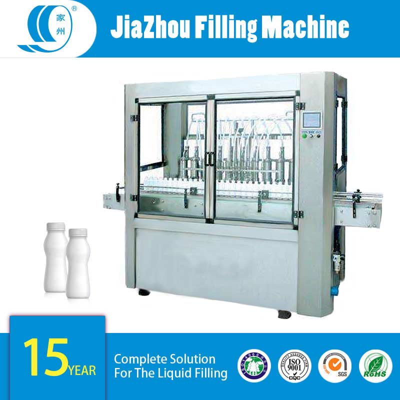 牛奶灌裝生產線設備灌裝物料時具有防滴漏,防腐蝕,防拉絲及升降灌裝裝置等特性。該灌裝機機身均采用不銹鋼制